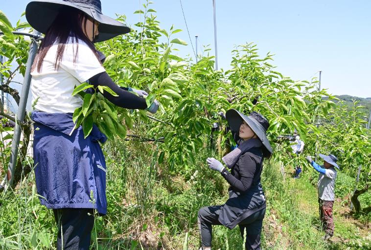 조규일 진주시장은 20일에 농업기술센터 직원 50여 명과 함께 진성면 구천리 단감재배 농장을 찾아 감 솎기 작업을 도우며 영농현장의 애로사항을 청취했다.