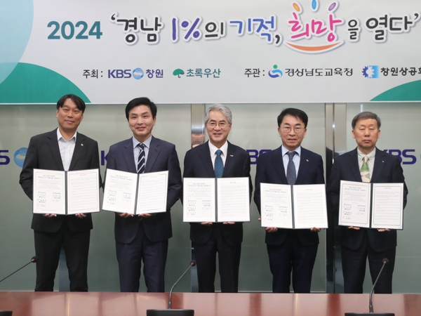 [뉴스서울] 경상남도교육청은 14일 KBS창원방송총국에서 KBS창원방송총국, 창원상공회의소, 초록우산어린이재단 경남지역본부와 함께 ‘경남 1%의 기적, 희망을 열다’ 지역사회 나눔 문화 확산 협약을 체결했다.