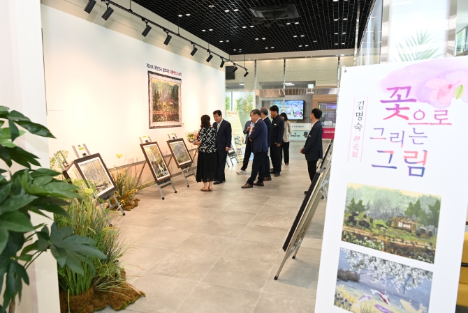 ▲ 제23회 대한민국 압화 대전 대통령상 “김명숙 작가” 시청 민원 휴게실 작품 전시회 열려 |