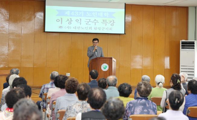 ▲ 제43기 노인대학, 이상익 군수 초청 특강 열어 |