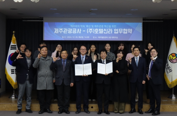 이날 업무 협약식에는 고승철 제주관광공사 사장, 김경록 제주신라호텔 총지배인 등이 참석했다.