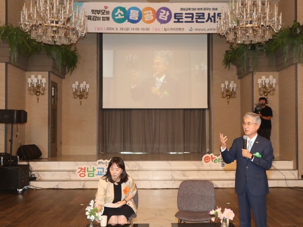 [뉴스서울] 경상남도교육청은 28일 창원시 마산회원구 힐스카이컨벤션에서 ‘경남교육 10년, 함께 꿈꾸는 미래’를 주제로 학부모 100명과 함께 소통 공감 토크 콘서트를 열었다.