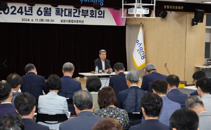 포항시는 11일 이강덕 시장 주재로 6월 확대간부회의를 통합보훈회관에서 개최, 건전한 보훈 문화 정착을 위한 결의를 다지면서 보훈의 의미를 되새기는 시간을 마련했다.