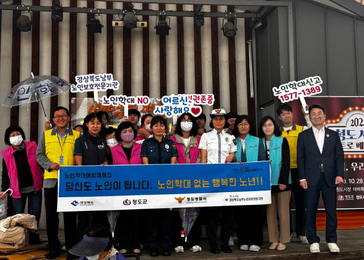 [뉴스서울] 청도군은 지난 29일 ‘청도군노인보호실무협의체’와 함께 경상북도의 추진계획에 따라 노인학대의 심각성 및 노인 인권 존중 메시지를 전달하여 사회적 인식을 제고하고자 노인학대 예방 합동캠페인을 펼쳤다.