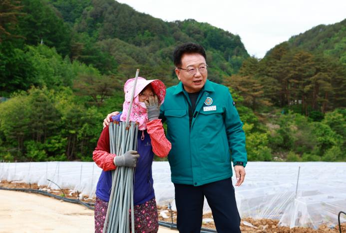 이번 금강송면 방문은 5월부터 시작한‘2024 군민 섬김데이’민생 현장 투어 세 번째로 영농현장과 금강송면사무소를 찾았다.