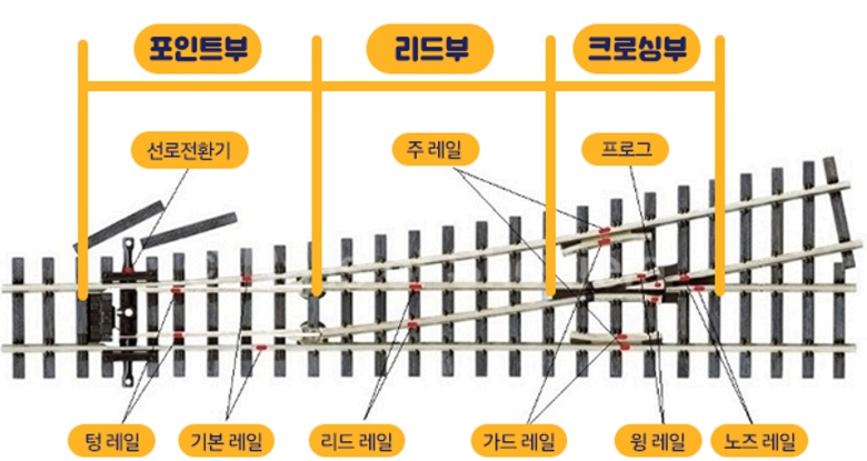 ▲ 분기기의 구조 및 부품별 명칭 -자료 출처: 국가철도공단 |