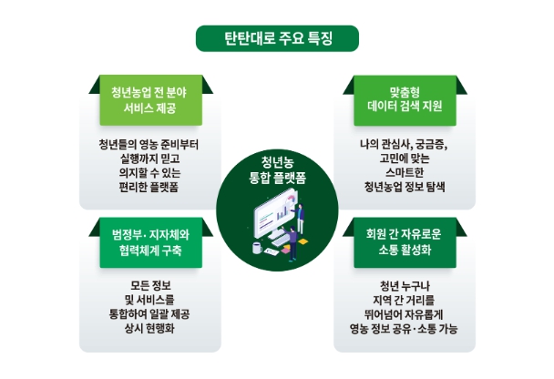 [뉴스서울] 농림축산식품부는 청년농업 관련 정보와 서비스를 온라인 상에서 제공하는 청년농 통합 플랫폼 ‘탄탄대로’ 누리집 서비스를 5월 22일부터 시작한다.