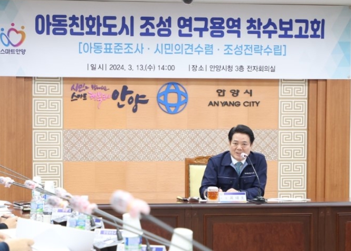 보고회 자리에서 최대호 안양시장은 “지난해 4분기 우리나라 합계출산율이 0.65명으로 역대 최저를 기록했다”면서 “한 명 한 명이 소중한 아이들이 행복하고 올바르게 성장할 수 있는 환경을 조성하는 것은 기성세대의 가장 큰 의무이자 책임”이라고 강조했다. 그러면서 “용역을 통해 아동의 실태와 요구를 정확하게 파악해 실효성 있는 정책을 마련하겠다”고 말했다.