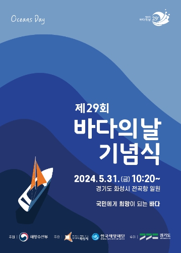 매년 5월 31일인 ‘바다의 날’은 UN해양법협약 발효(1994. 11.)를 계기로 국민에게 바다의 중요성을 알리기 위해 1996년 지정된 국가 기념일이다. 올해는 UN해양법협약’ 발효 30주년이라는 의미를 기리며, 5월 31일 경기도 화성시 전곡항에서 기념행사를 개최한다.
