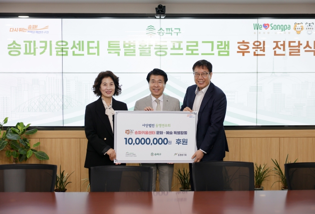 [뉴스서울] 송파구는 사단법인 동행연우회가 ‘송파키움센터 문화‧예술 특별활동’을 위하여 1천만 원을 후원했다고 17일 밝혔다.