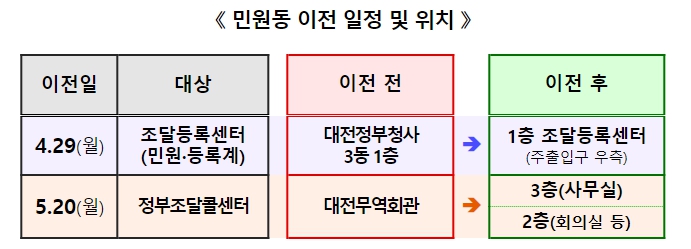 ▲ 민원동 이전 일정 및 위치 |