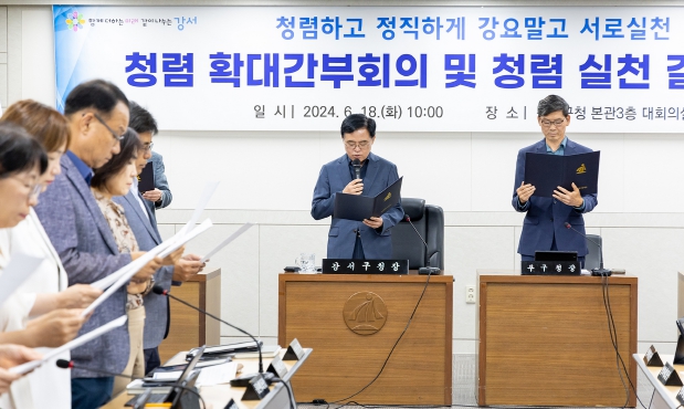 서약서에는 법과 원칙 준수 및 신뢰받는 강서 구현, 사적 이해관계 배제 및 공정한 업무수행, 금품·향응 수수 등 비위행위 금지, 직위를 이용한 이권 개입 및 청탁 금지, 갑질 행위 및 부당한 업무지시 금지 등이 담겼다.