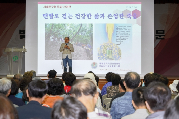 [뉴스서울] 서대문구가 5월 30일 오후 구청 대강당에서 맨발걷기국민운동본부 박동창 회장을 강사로 초청한 가운데 ‘맨발걷기의 기적-맨발로 걷는 건강한 삶’이란 주제로 서대문 명사특강을 개최했다.