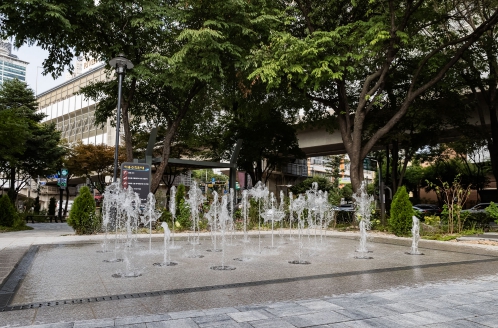 [뉴스서울] 광진구가 무더위에 지친 구민에게 휴식 공간을 제공하고자, 자양역 인근 약초원소공원(자양동 553-22)에 바닥분수를 설치했다.