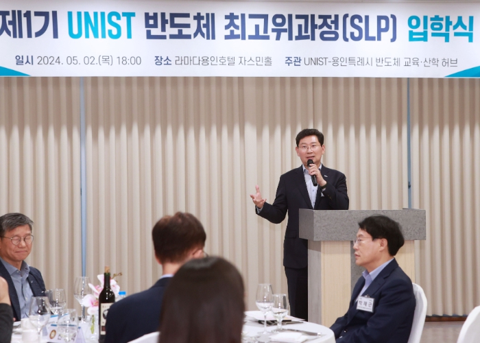 지난해 11월 반도체 전문인력 양성을 위해 ‘반도체 교육·산학 허브 구축을 위한 업무협약’을 맺은 용인특례시와 UNIST는 지난 2일 ‘반도체 최고위과정 제1기 입학식’을 열었다.