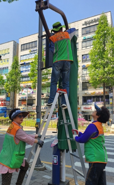 지난 2일부터 김포시 자율방재단에서 그늘막을 펼치는 작업을 실시하여 본격적인 운영을 개시했다. 평년기온과 다르게 벌써부터 25도를 넘나드는 초여름 날씨에 그늘막 추가설치와 함께 그늘막을 개방했다.