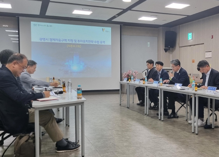시는 지난 16일 평생학습원에서 정순욱 부시장, 자문위원 등 20여 명이 참석한 가운데 ‘광명시 경제자유구역 지정 및 투자유치전략 수립 용역 최종보고회’를 개최했다.