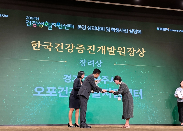 [뉴스서울] 광주시 오포건강생활지원센터는 20일 ‘2024년 건강생활지원센터사업 성과 대회’에서 우수기관 유공 기관표창을 수상했다.