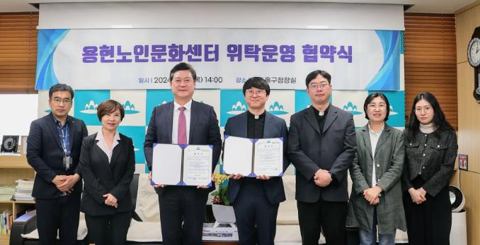 [뉴스서울] 인천 미추홀구는 16일 구청장실에서 용현노인문화센터의 위탁운영을 위해 사회복지법인 인천가톨릭사회복지회(대표 정윤화)와 협약을 맺었다.