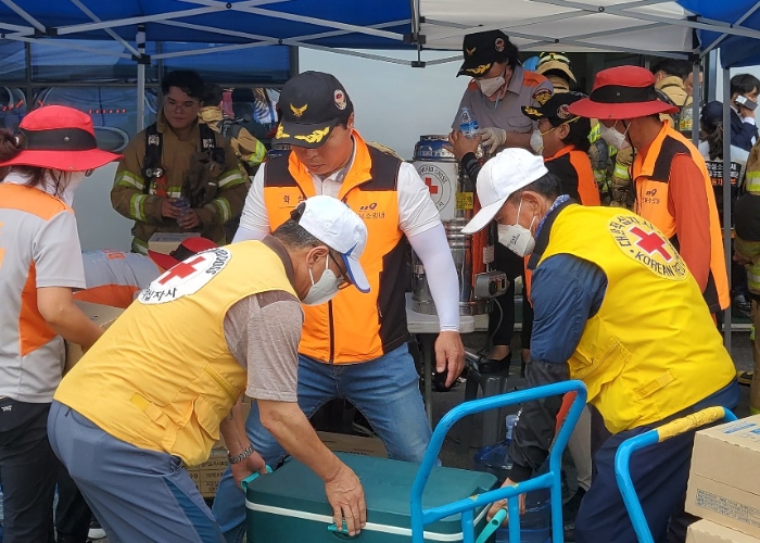 [뉴스서울] ‘화성 아리셀 공장 화재사고’극복을 위해 자원봉사자들이 더운 날씨에도 불구하고 구슬땀을 흘리고 있다.