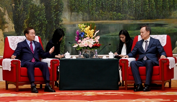 ▲ 유정복 인천광역시장이 지난해 6월 중국 톈진시 영빈관에서 천민얼 톈진 당서기와 만나 협력방안을 논의하고 있다. |