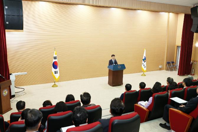 ▲ 윤건영 교육감, 4월 월례조회 개최 사진 |