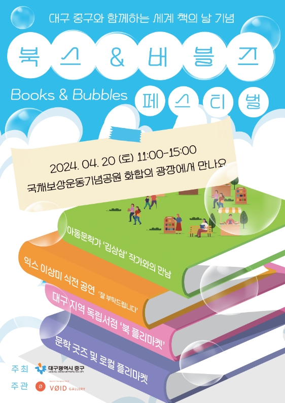[뉴스서울] 대구 중구는 20일 오전 11시 국채보상운동기념공원 화합의 광장에서 ‘북스 · 버블즈 페스티벌’을 개최한다.