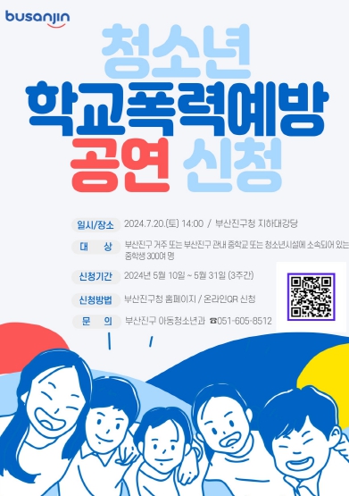 [뉴스서울] 부산진구에서는 2024년 7월 20일 청소년들에게 건전한 환경을 만들어주고자 청소년을 위한 학교폭력예방 공연을 개최한다.