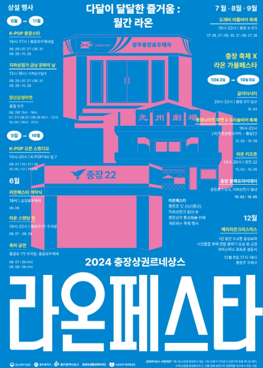 [뉴스서울] 광주 동구는 충장상권 활성화를 위해 6월부터 오는 12월까지 충장로와 지하 상점가 일원에서 ‘2024년 충장상권 르네상스 라온페스타’를 개최한다고 밝혔다.