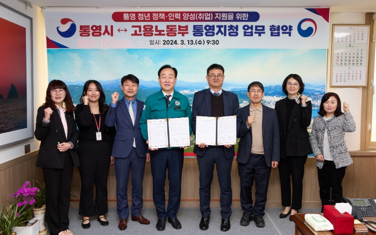 [뉴스서울] 통영시는 13일 통영시청 시장실에서 통영 청년 정책과 인력양성(취업)지원 및 관련 사업 추진을 위해 고용노동부 통영지청과 업무 협약을 체결했다.