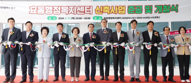 대전 동구는 27일 효동 행정복지센터 신청사에서 박희조 동구청장을 비롯해 박영순 동구의회 의장 등 주요 내빈과 지역 주민 100여 명이 참석한 가운데 개청식을 개최했다.