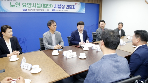 우범기 전주시장은 30일 시청 3층 회의실에서 전주시 소재 법인요양시설로 구성된전주지역 요양시설 시설장 9명과 간담회를 가졌다.