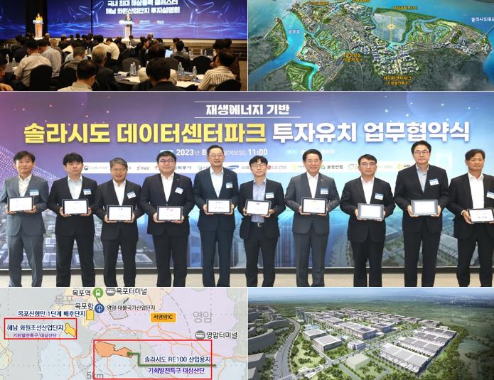 이와 관련 지난해 8월 국내 굴지의 13개 기관, 기업이 참여하여 글로벌데이터센터파크 투자협약을 맺었고, 전남지역에서 4.5기가와트 규모의 해상풍력사업을 추진하고 있는 크레도오프쇼어사와 400억원 규모 투자협약을 체결하는 등 관련 기업들의 투자도 잇따르고 있다.