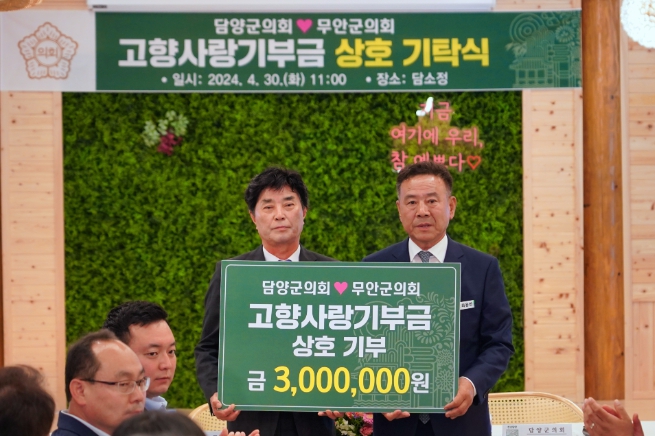 이번 기탁식은 작년 무안군의회에서 열린 이후 두 번째로 진행되었으며, 담양군의회와 무안군의회 의원을 비롯한 직원들이 자발적으로 참여하여 각 300만 원을 전달했다.