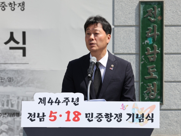 [뉴스서울] 전라남도의회 서동욱 의장은 5월 17일 전남도청 김영랑 문 앞 광장에서 열린 전남 5‧18민주화운동 44주년 기념식에 참석해 “전남도의회에서도 민주 영령들의 희생이 헛되지 않도록 남겨진 진실을 밝히기 위해 노력하겠다”고 말했다.