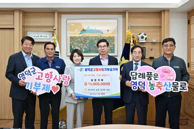 김광열 영덕군수는 “지역 간 상생협력과 교류를 위한 상호기부에 감사드린다”며, “기부금은 주민복리 향상을 위해 소중히 쓰겠다”고 화답했다.