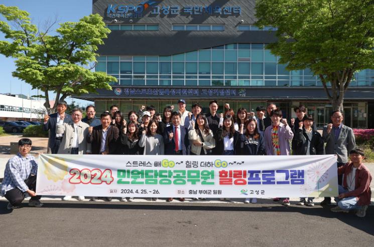 [뉴스서울] 고성군은 4월 25일부터 26일까지 1박 2일간 민원 업무 담당자 30여 명을 대상으로 충남 부여군 일원에서 ‘2024년 민원 담당 공무원 힐링 프로그램’을 실시한다고 밝혔다.