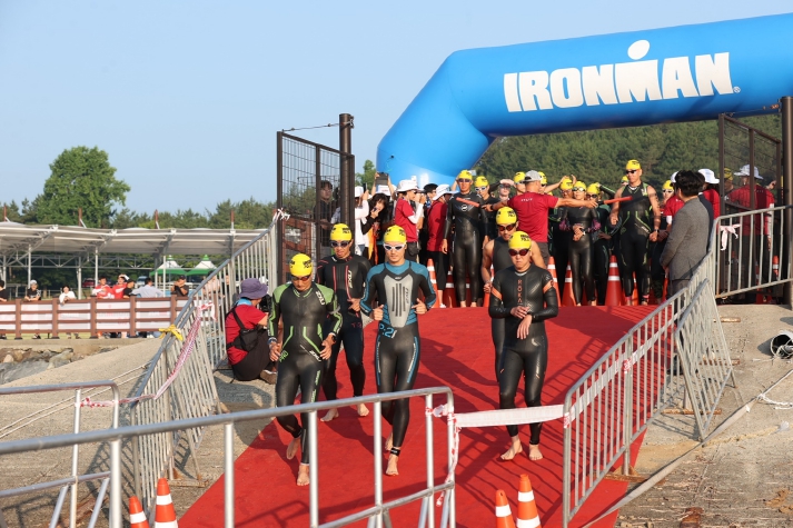 16일 오전 6시 20분부터 수영(1.9km)을 시작으로 자전거(90.1km), 달리기(21.1km)가 진행됐다.