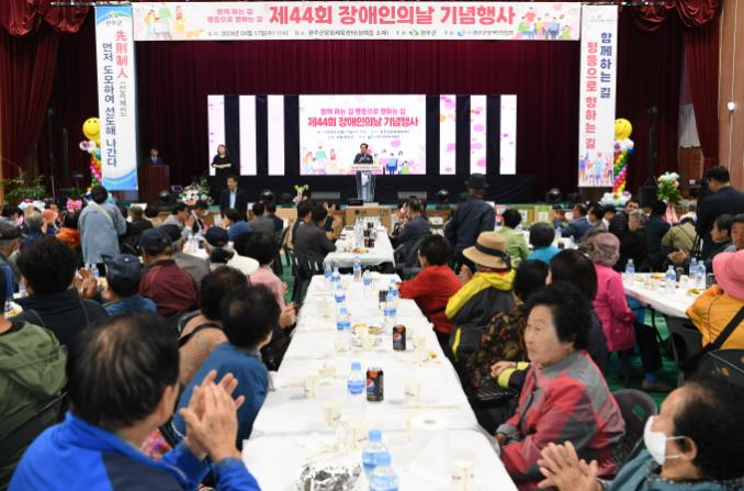 유희태 완주군수는 “‘함께하는 길, 평등으로 향하는 길!’ 제44회 장애인의 날 슬로건처럼 오늘 행사가 장애인과 비장애인 다름이 없는 따뜻한 동행, 모두가 평등한 사회의 밑거름이 되길 바란다”며 “장애인복지 증진을 위해 더욱 노력하는 완주군이 되겠다”고 밝혔다.