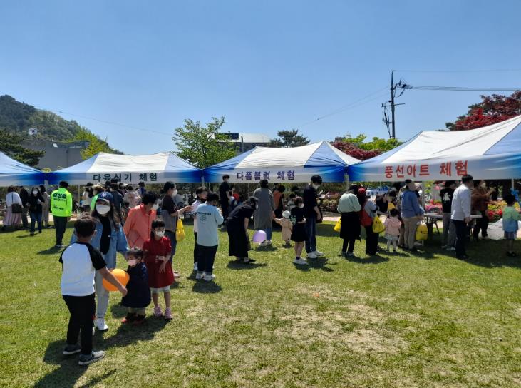 체험부스는 풍선아트, 레인보우타투, 보석십자수 소품만들기, 다육심기, 마카롱만들기, 비눗방울 놀이와 관내 유관기관과 단체에서 준비한 다양한 놀거리가 준비되어 있으며, 떡볶이와 아이스크림 및 팝콘, 솜사탕과 슬러시 등의 간식을 비롯해 점심으로는 햄버거를 제공할 예정이다.