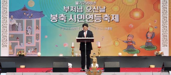 홍 시장은 축사에서 “부처님 오신 날에 등을 밝히는 것은 등불이 어둠을 몰아내고 환한 빛을 내듯이 무지에서 벗어나 깨달음의 빛으로 인도한 부처님의 높은 덕을 기리는 의미”라며 “세상에 빛과 행복을 전달하고자 하는 우리 모두의 염원을 담고 있다고 생각한다”고 말했다.
