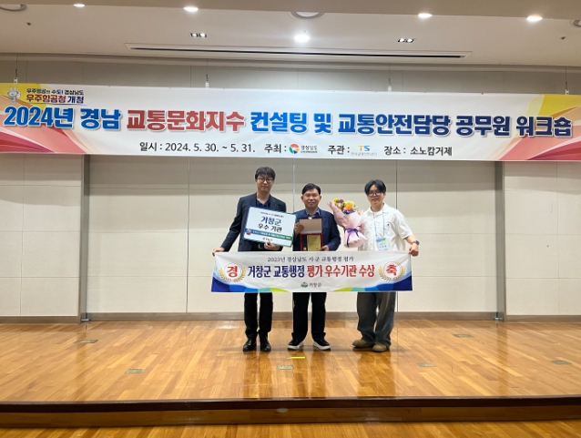 [뉴스서울] 거창군은 2023년 경상남도 시‧군 교통행정 분야 평가에서 우수 시‧군으로 2년 연속 선정되어 지난 30일 경상남도 주관 2024년 교통문화지수 컨설팅 및 교통안전담당 공무원 워크숍에서 기관 표창과 특별조정교부금 1억 원을 확보하는 쾌거를 이뤘다.