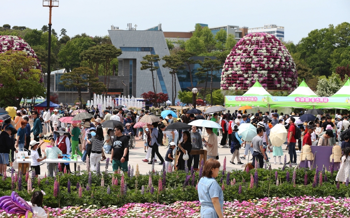 유채꽃, 안개꽃, 꽃양귀비 등 봄꽃의 향연을 이룬 함평천 수변길과 엑스포공원 일대에서는 따스한 봄날의 속삭임에 더욱 활력을 불어넣었다.