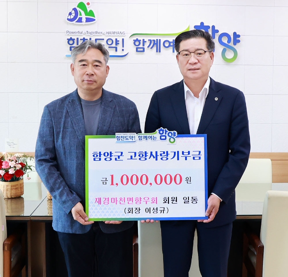 [뉴스서울] 함양 재경마천면향우회 회원 10명이 고향 함양의 발전을 응원하며 고향사랑기부금 100만 원을 전달했다.