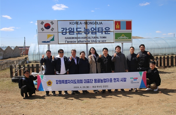 앞서 지난 4.29에는 강원특별자치도의회 대표단은 몽골 튜브도 준모드시에 위치한 강원특별자치도 농업타운(제1타운)을 방문해 비닐하우스 등의 시설을 둘러보고 도 농업타운 운영 현황, 사업내용, 추진상황, 지원사업에 대한 성과 등의 설명을 듣고 향후 발전방안 등을 논의했다.