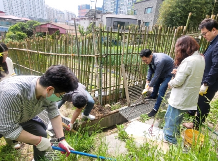 ▲ 도시침수 상황에 대응한 배수로 정비를 하고 있다. 사진2. 도시침수 주민대피소로 주민 대피훈련을 하고 있다. |