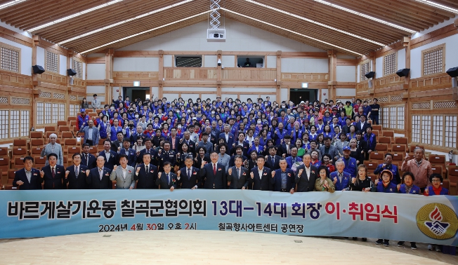 [뉴스서울] 바르게살기운동 칠곡군협의회는 30일 향사아트센터에서 김재욱 칠곡군수, 심청보 칠곡군의회 의장과 도·군의원, 바르게살기운동 가족 등 300여명이 참석한 가운데 ‘바르게살기운동 칠곡군협의회장이취임식’을 개최했다.