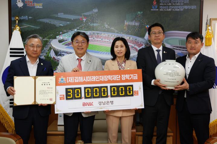 [뉴스서울] 김해시미래인재장학재단은 21일 BNK경남은행에서 3,000만원을 기탁했다고 밝혔다.