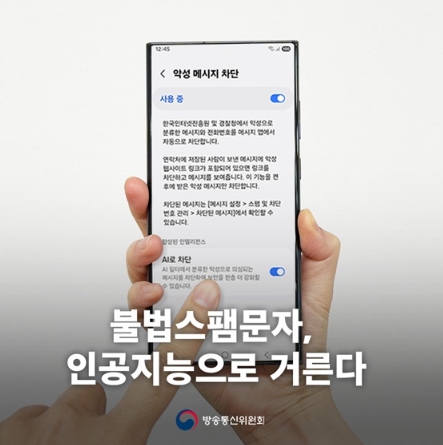 방송통신위원회가 한국인터넷진흥원, 삼성전자와 협업해 인공지능 기반 악성 메시지 차단 기능*을 개발했습니다.