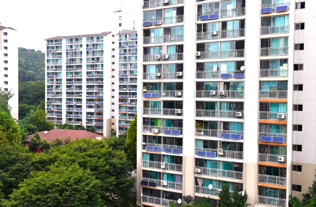 ▲ 노원구 아파트 단지에 베란다형 미니태양광 설치된 모습(월계동 청백1단지) |